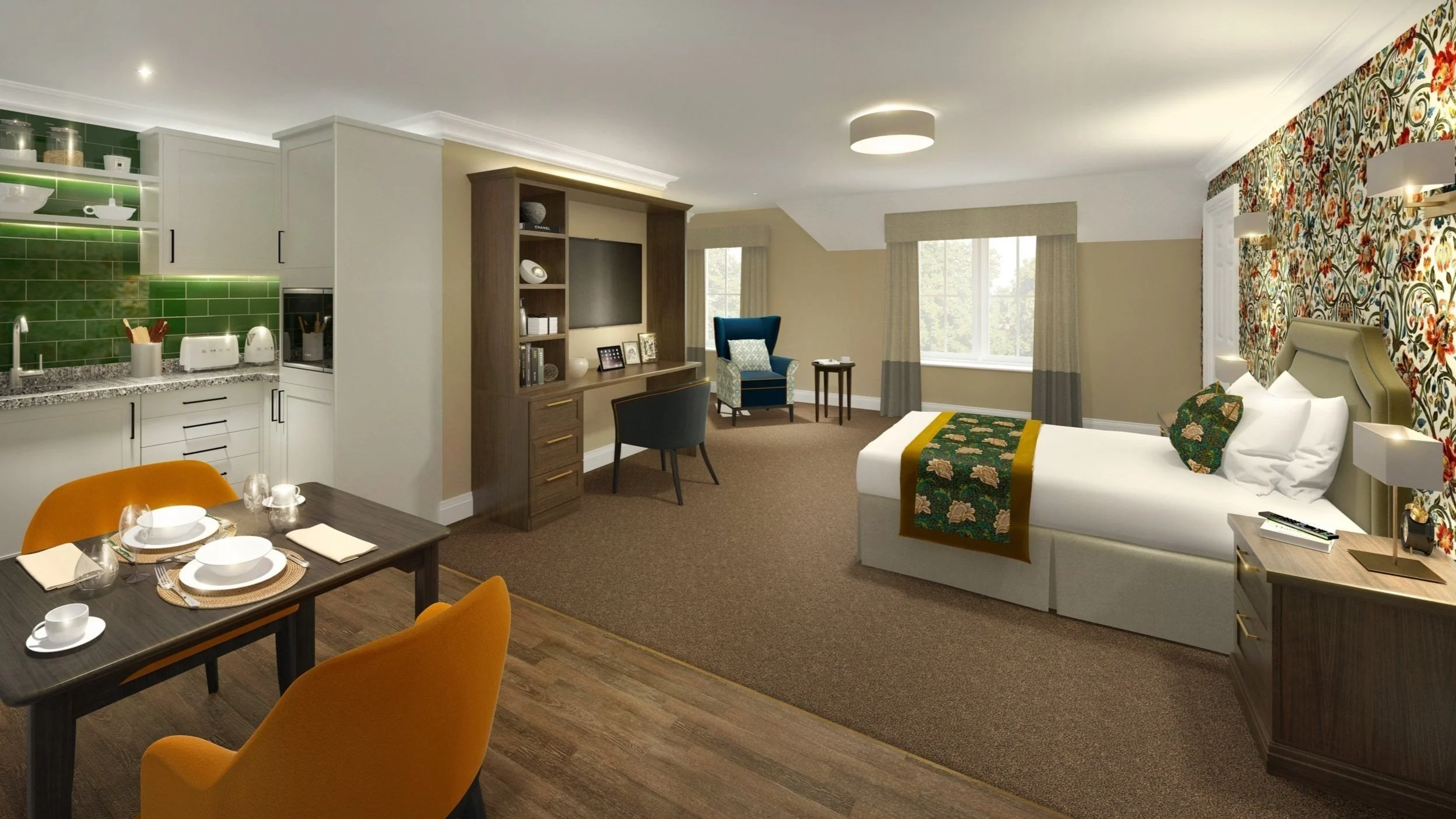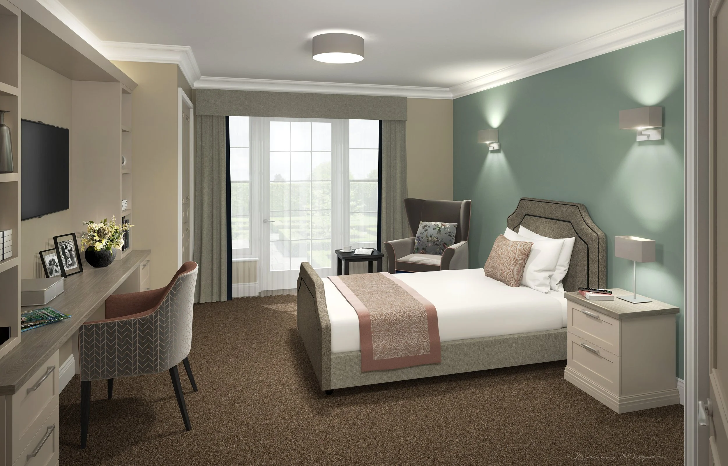 A new luxury 80 bed luxury care home by Hallmark Care Homes providing Residential, Nursing and Dementia Care . The interior design pays homage to the Georgian Architecture of local city. It features stunning ceilings and luxurious quality interiors. The facilities include a cinema, specialised gym and large terrace with fantastic communal spaces for the communities to enjoy.