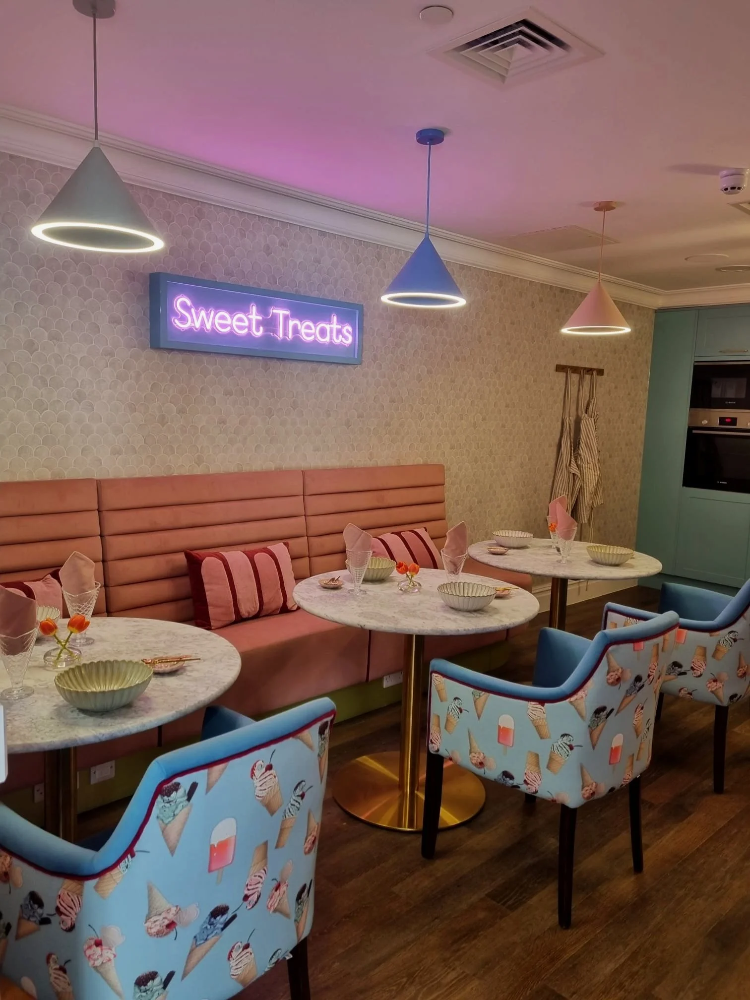A new 75 bed luxury care home by Hallmark Care Homes providing Residential, Nursing and Dementia Care. The design has been carefully considered and reflects the local Angmering village and surrounding areas with unique bespoke Joinery boasting a stain glass window of Arundel Cathedral, mural of Angmering Village, an entrance cherry tree and sweet treats ice cream parlour. The level of detail and time taken to deliver this prestigious home indicates the ability and creativity of the team involved.