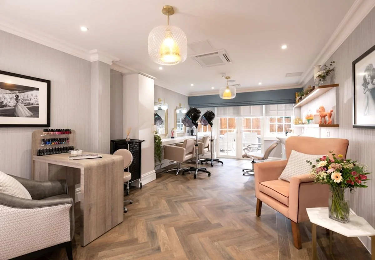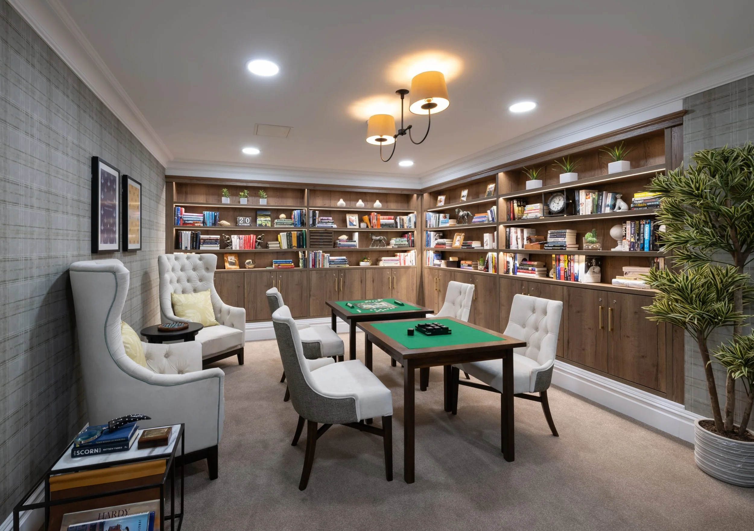 A Hallmark Care Homes design with 77 bedrooms including several suites with kitchenettes and lounge area. The cafe is the hub of the home with access to beautiful award winning gardens, an incredible fish tank lines one wall of the cafe. There is a cinema, hair salon & treatment room along with dedicated music room and wall to wall well stocked library/games room. A truly magnificent home.
